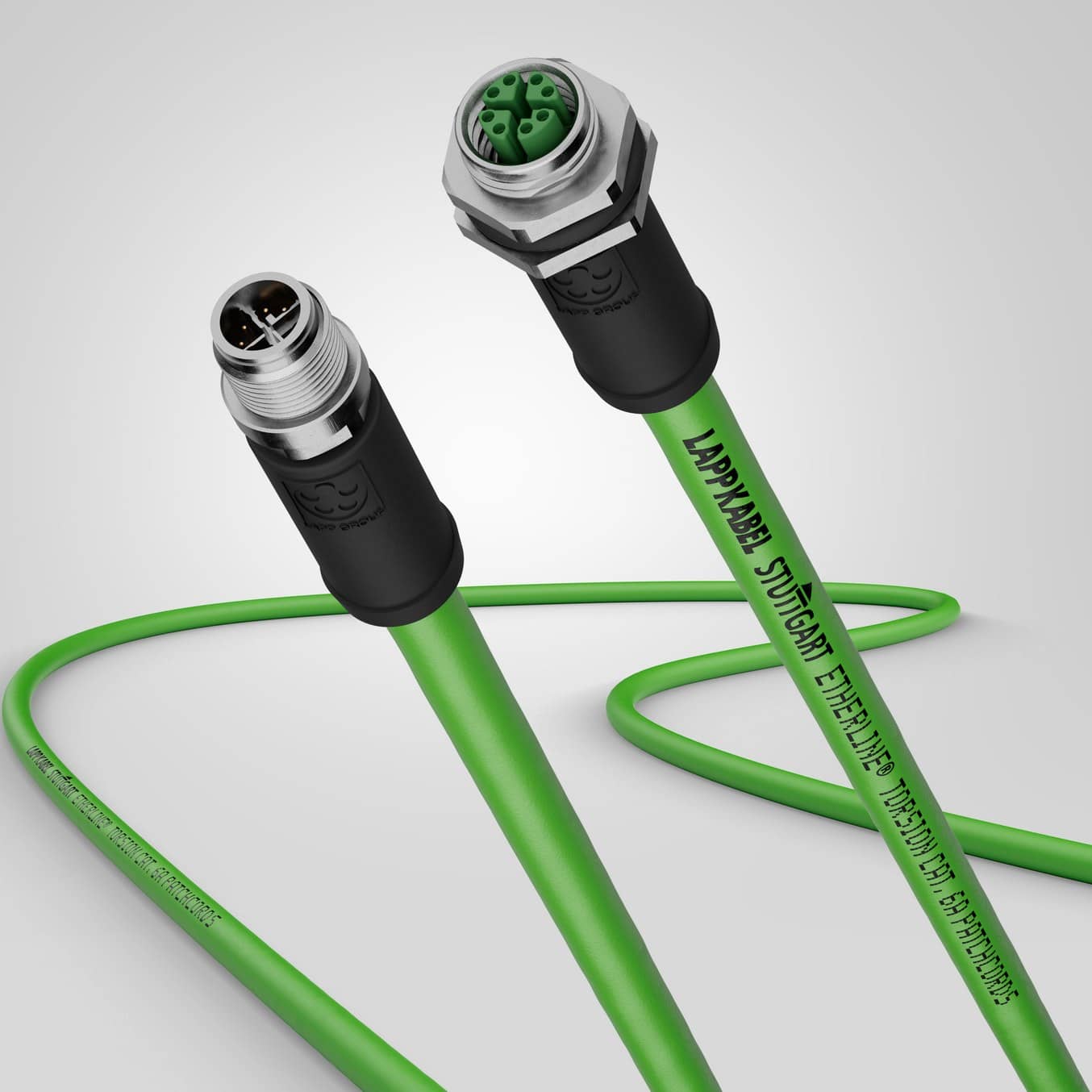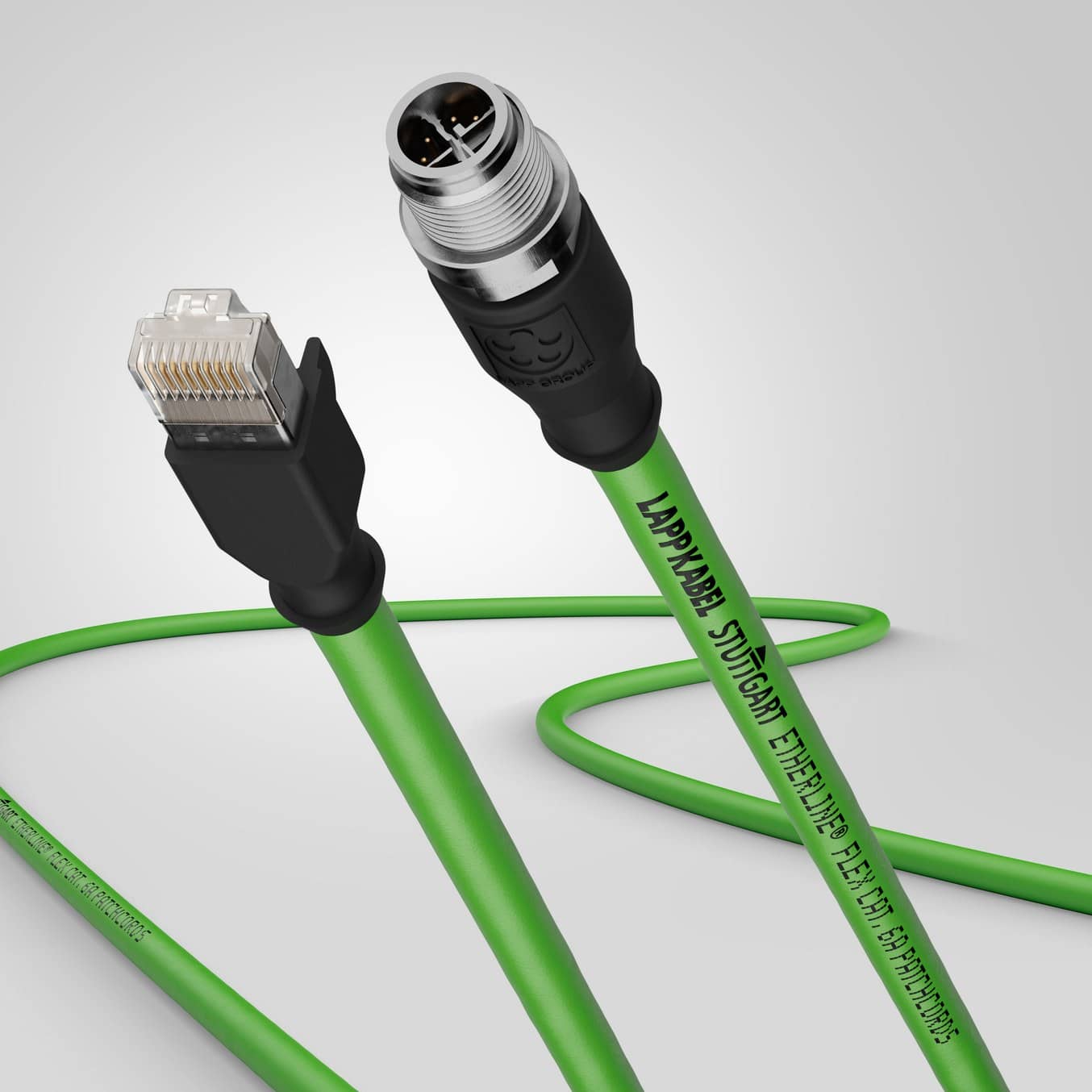 Plug & Play za torzijske aplikacije: Ta podatkovni kabel z poliuretanskim zunanjim plaščem in M12 konektorjem odpornim na vibracije, ki se lahko obrne do ± 180°/m ter prenese signale do hitrosti 10 Gbit/s (Cat. 6A). Prava prednost za robotske aplikacije ali vetrne turbine! Lahko se uporablja tudi v PROFINET omrežju.