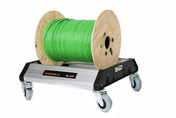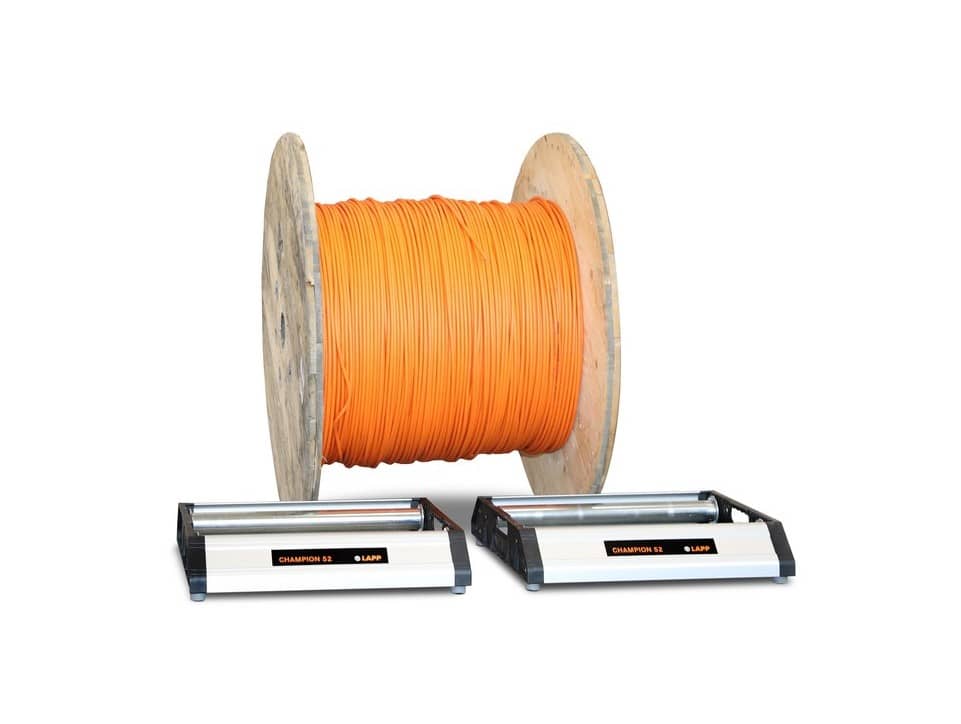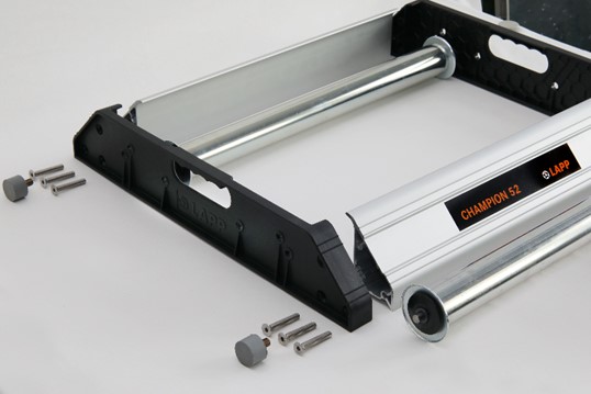 Champion je naša rešitev za enostavno odvijanje kabelskih bobnov. Brez težav sprejme od kolutov premera 15cm do bobnov s premerom roba 90cm. Zaradi posebne zasnove je LAPP Champion posebej lahek, hkrati pa zagotavlja varno in stabilno podlago na različnih površinah.