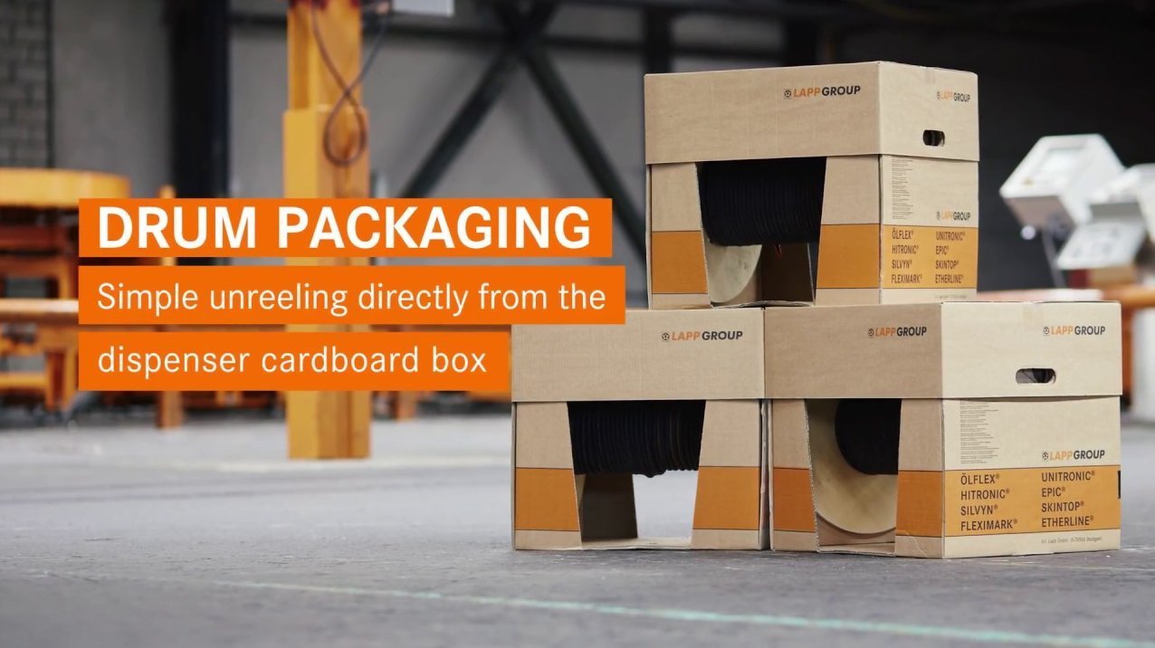 LAPP vam jo ponuja v naši patentirani roll-off škatli, s katero lahko brez truda odvijate naše bobne s premerom roba do 40 cm. Kartonske škatle so idealne za ročni transport, se lahko zlagajo na mestu uporabe ali shranijo na police skladišča.