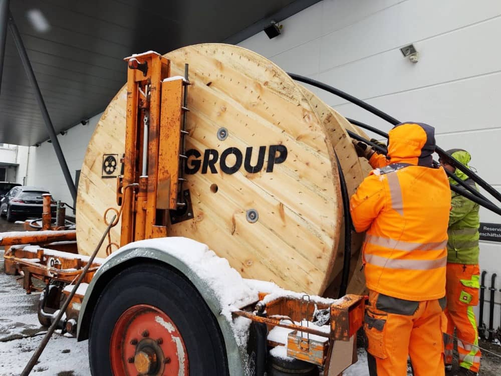 Z več-komornim bobnom lahko celotno ožičenje izvedete neposredno na vašem gradbišču. Običajno se na boben navije material enake dolžine (primer 3 x 500 m).
