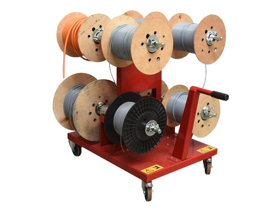 Nosilec bobnov je lahko opremljen z osmimi kabelskimi bobni, po potrebi pa ga je mogoče razširiti s štirimi nosilnimi palicami. Na ta način je mogoče, do mesta uporabe, udobno prenašati kabelske bobne, s premerom roba med 40 in 50 cm in skupno obremenitvijo do 400 kg.